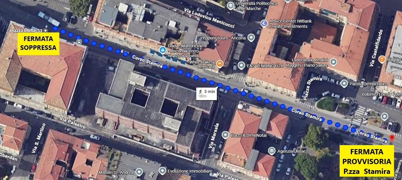 La fermata sarà spostata di circa 150 metri più avanti, in Piazza Stamira (direzione Piazza Cavour).